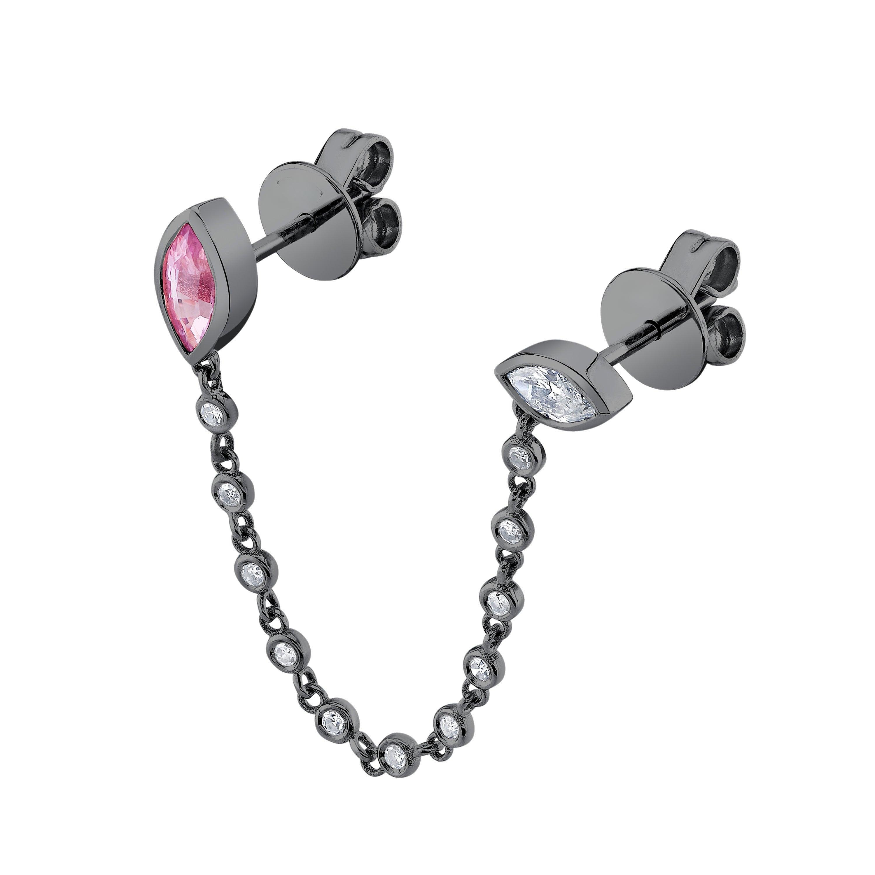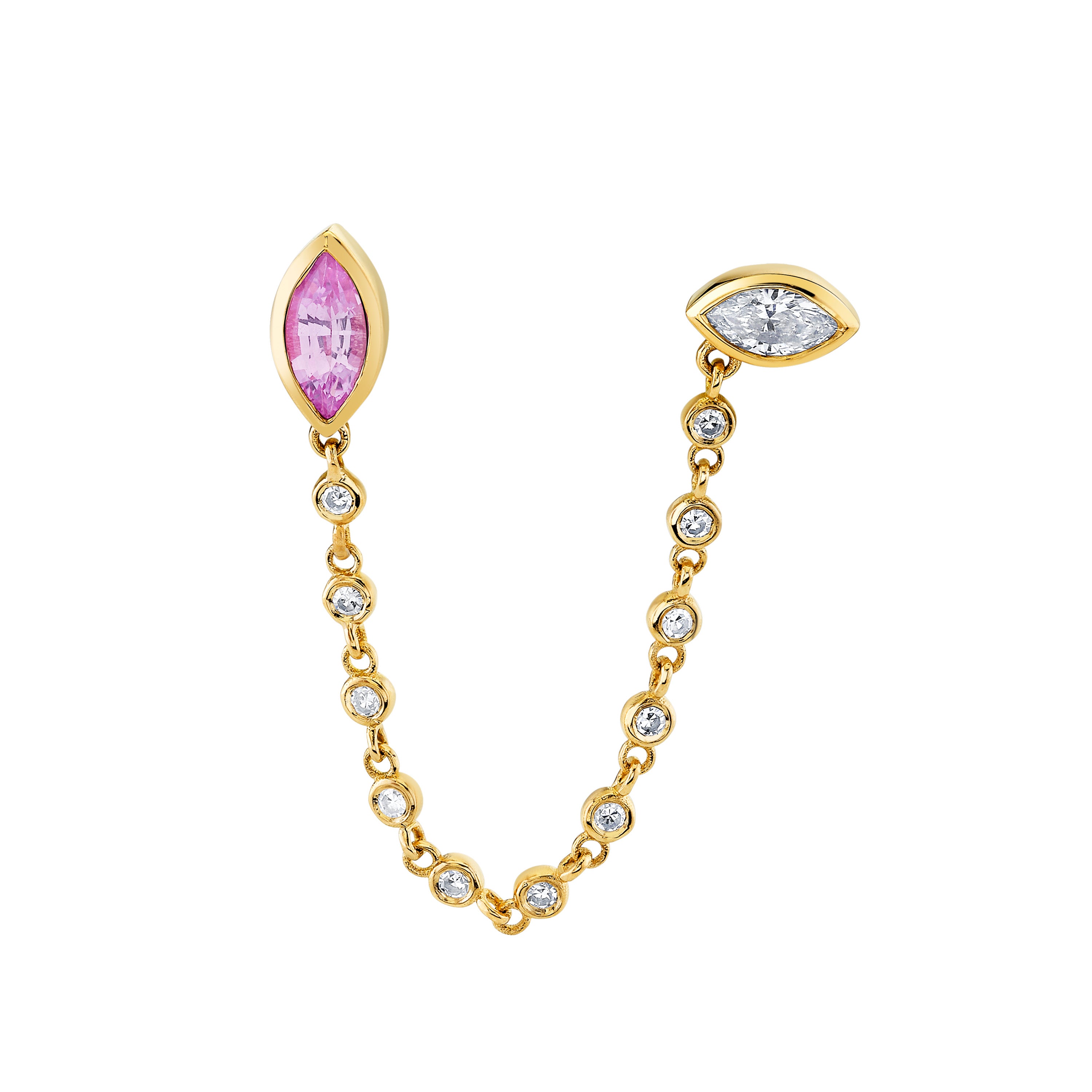 PINK SAPPHIRE & DIAMOND DUO CHAIN LINK STUD