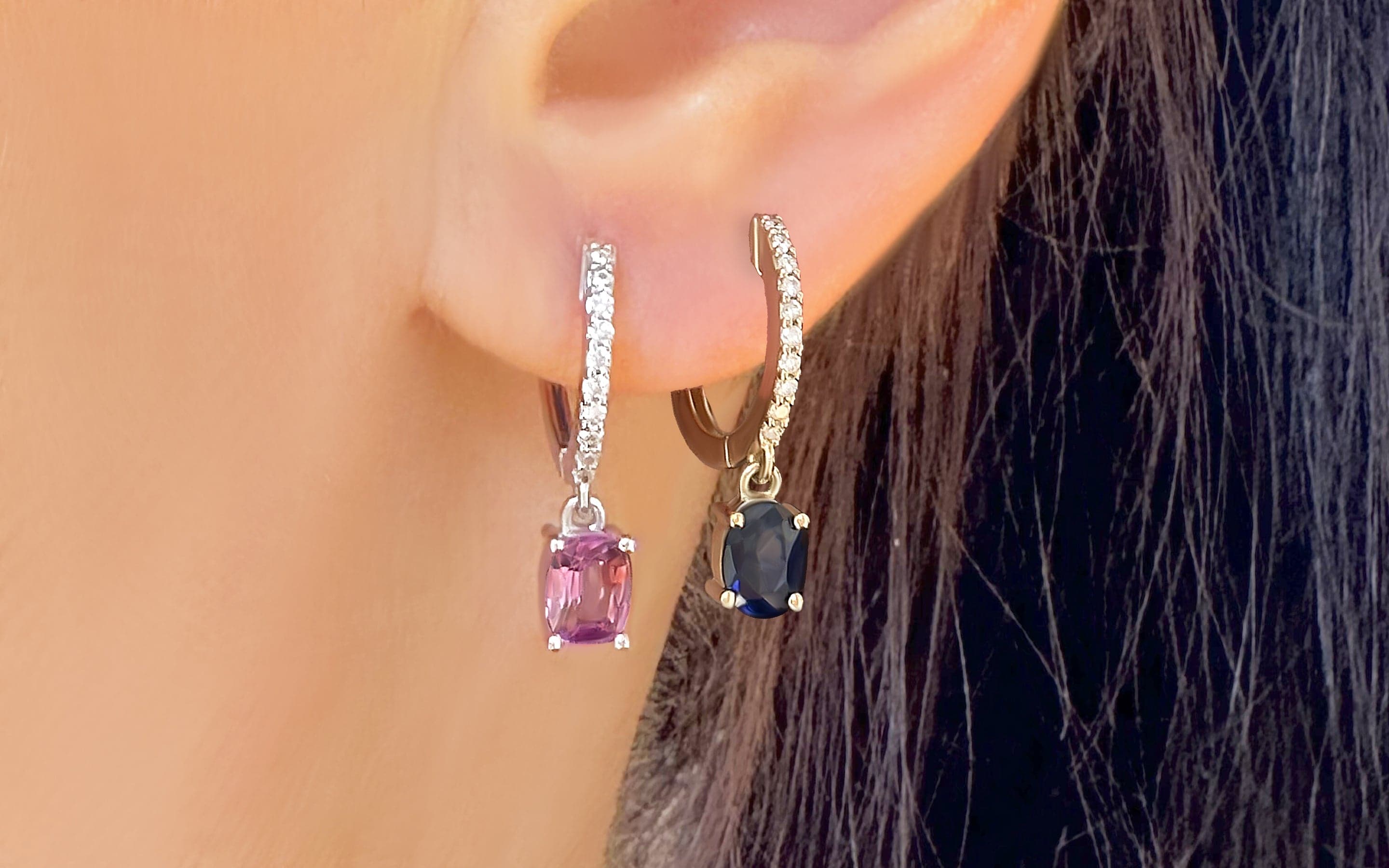 White Gold earrings with Pink Sapphire and White Diamonds. This item in stock ready to ship in 1- 3 days.