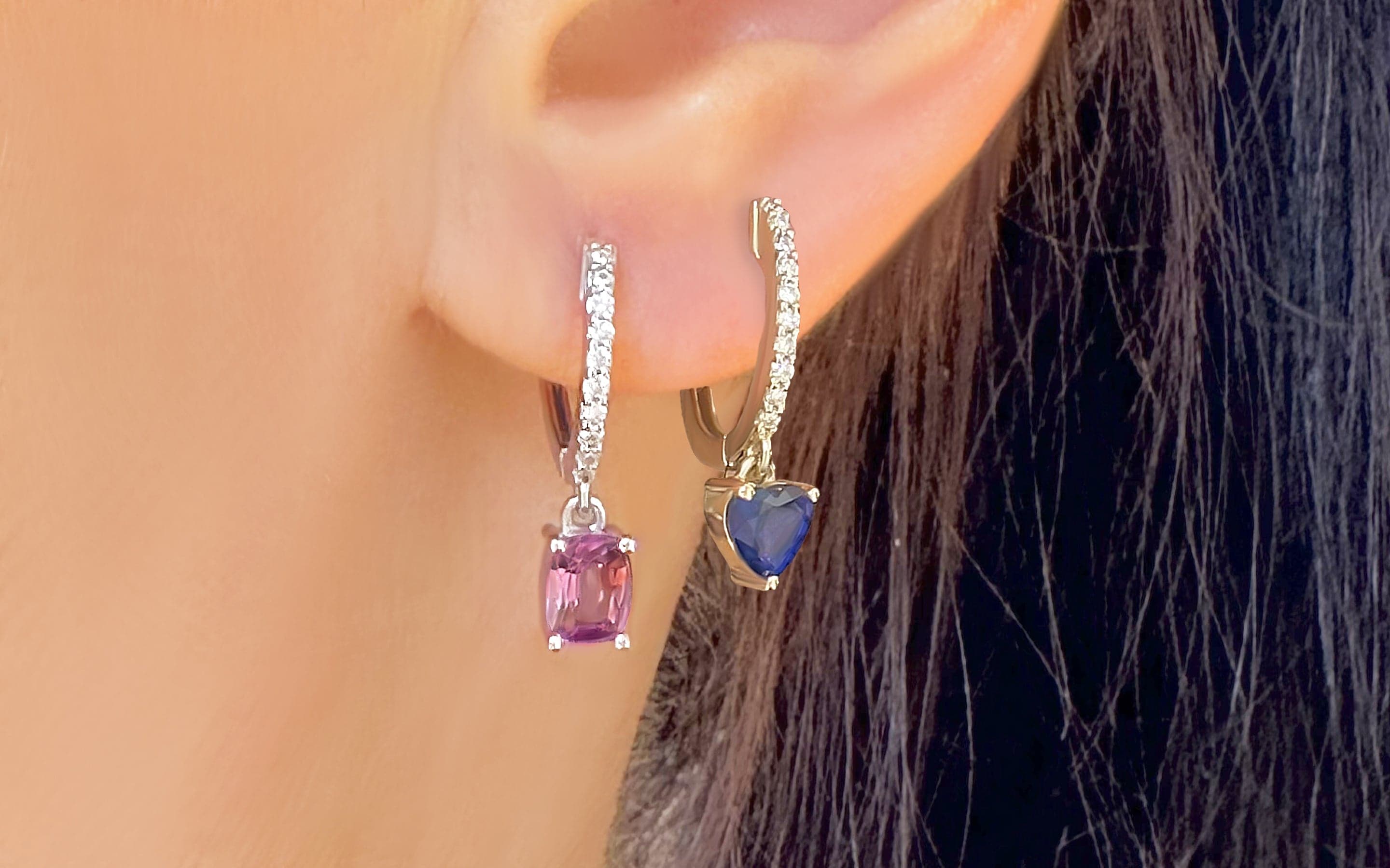 Tucana earrings with sapphires and diamonds are the perfect jewelry for a meeting with friends or a social event. The laconic form and moving element will perfectly complete your look.