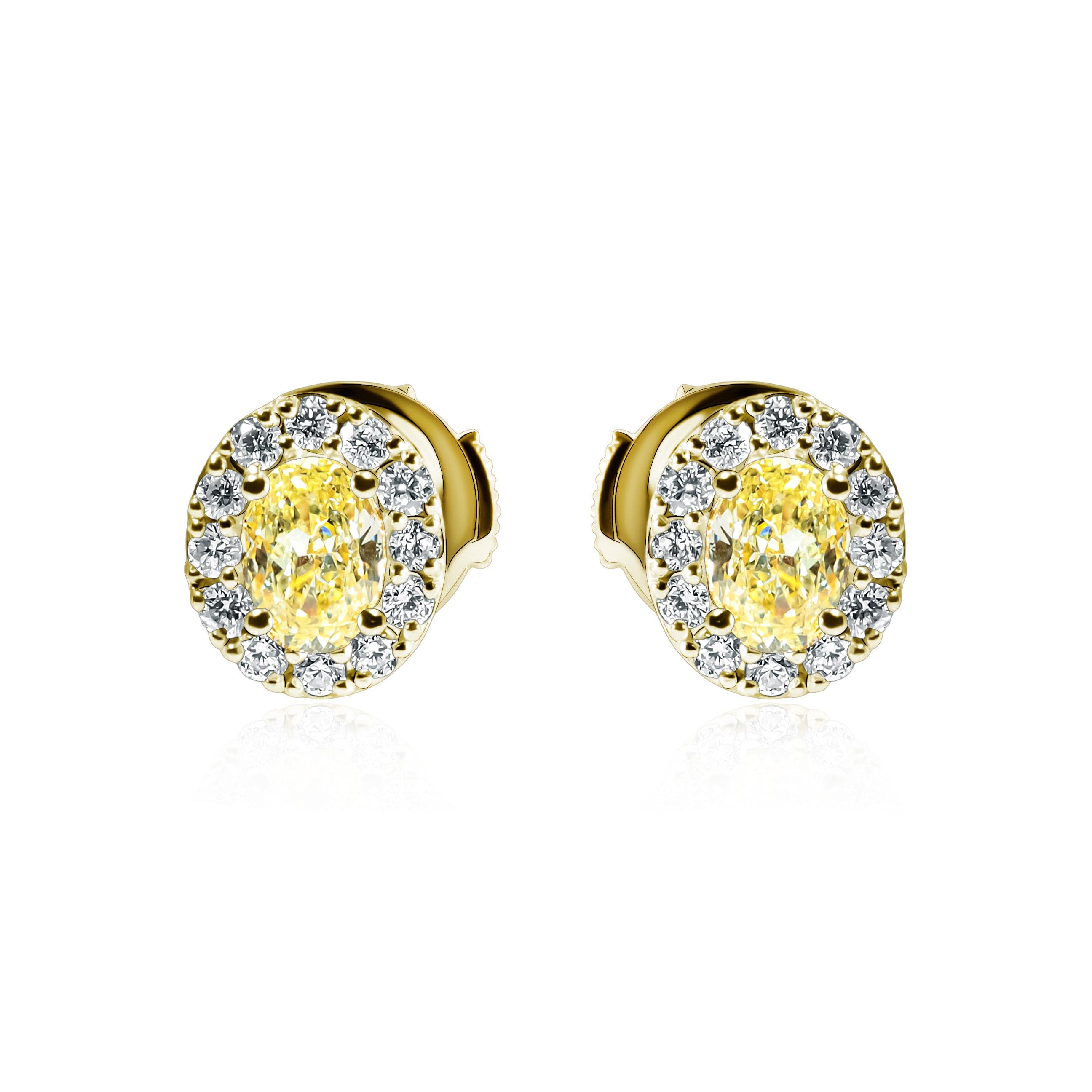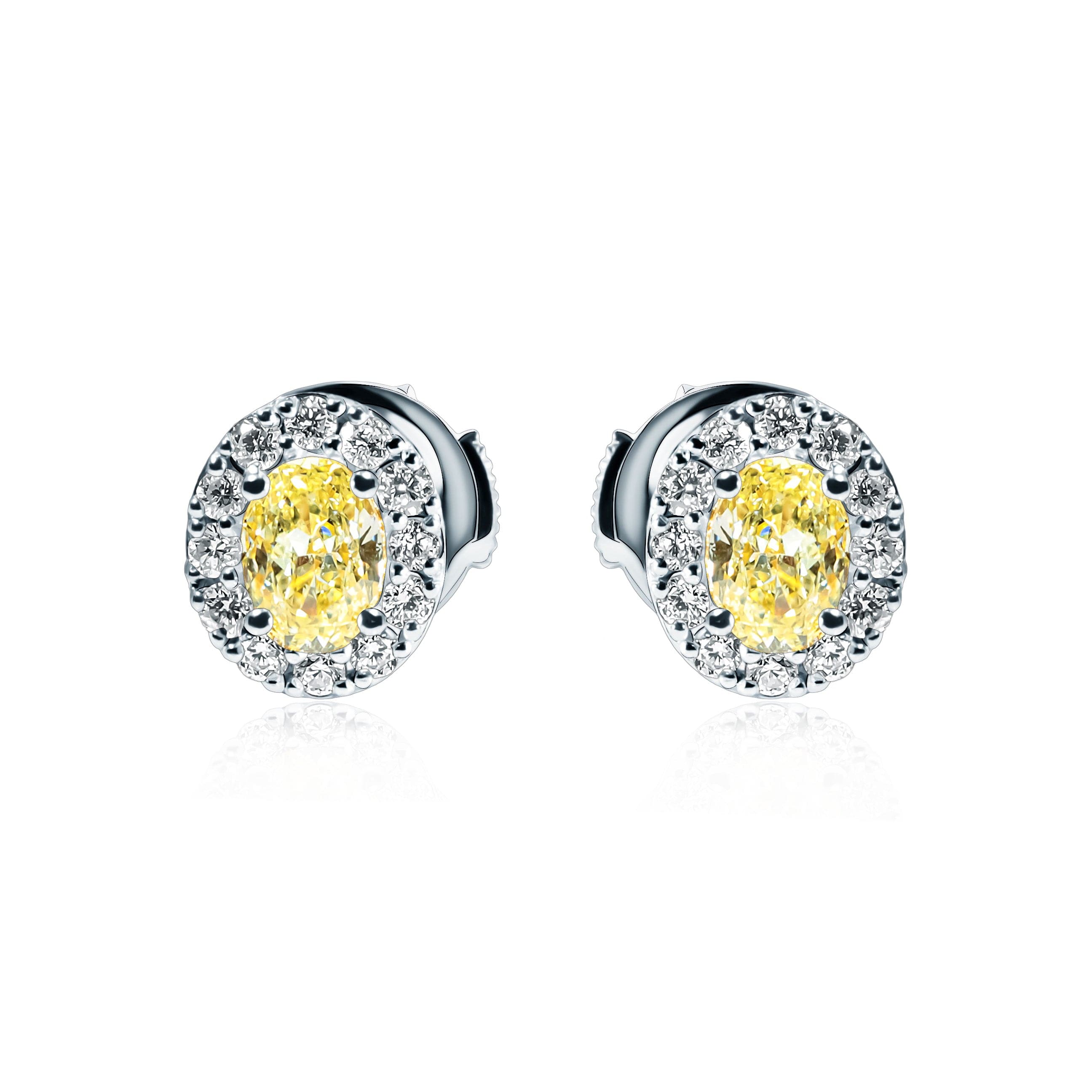 Just take a look at them! Two drops of sun on your ears. Sol earrings with fancy yellow diamonds in the center and white around them sparkle with lightness, cheerfulness, and positivity.