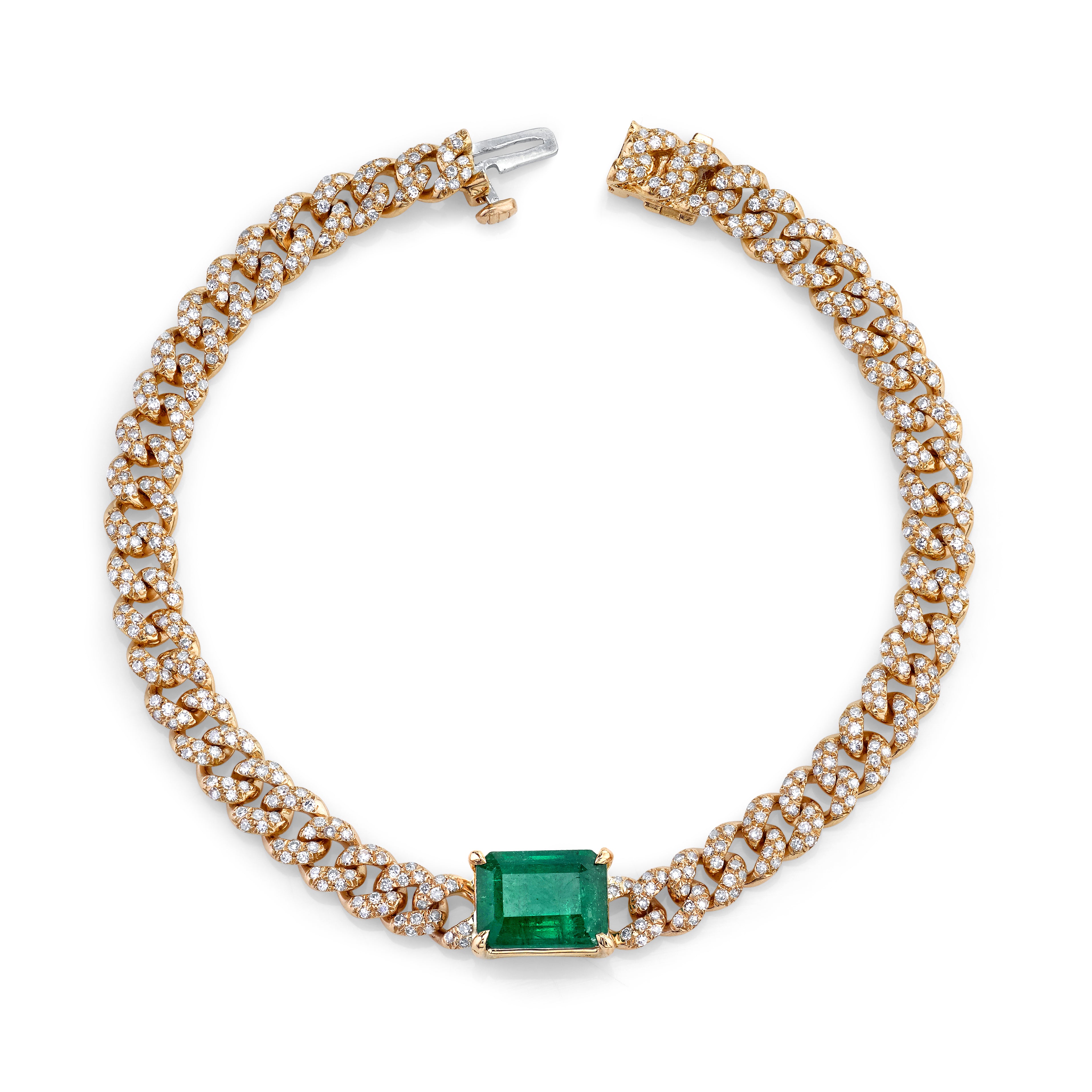 EMERALD CENTER PAVE MINI LINK BRACELET