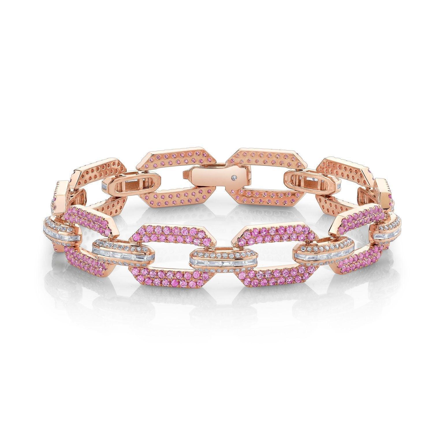 The SHAY Pink Sapphire & Diamond Pave Flat Geo Link Bracelet.
