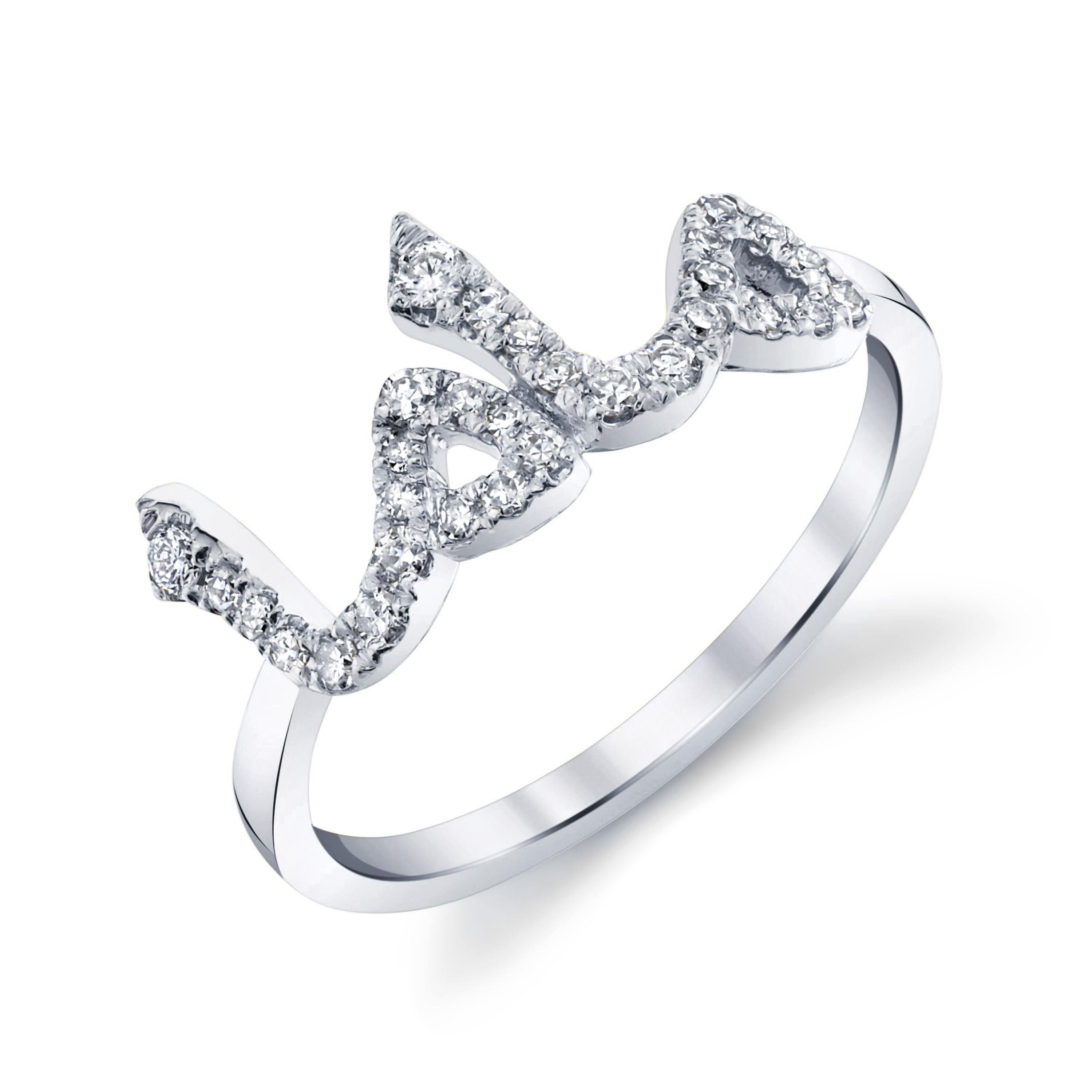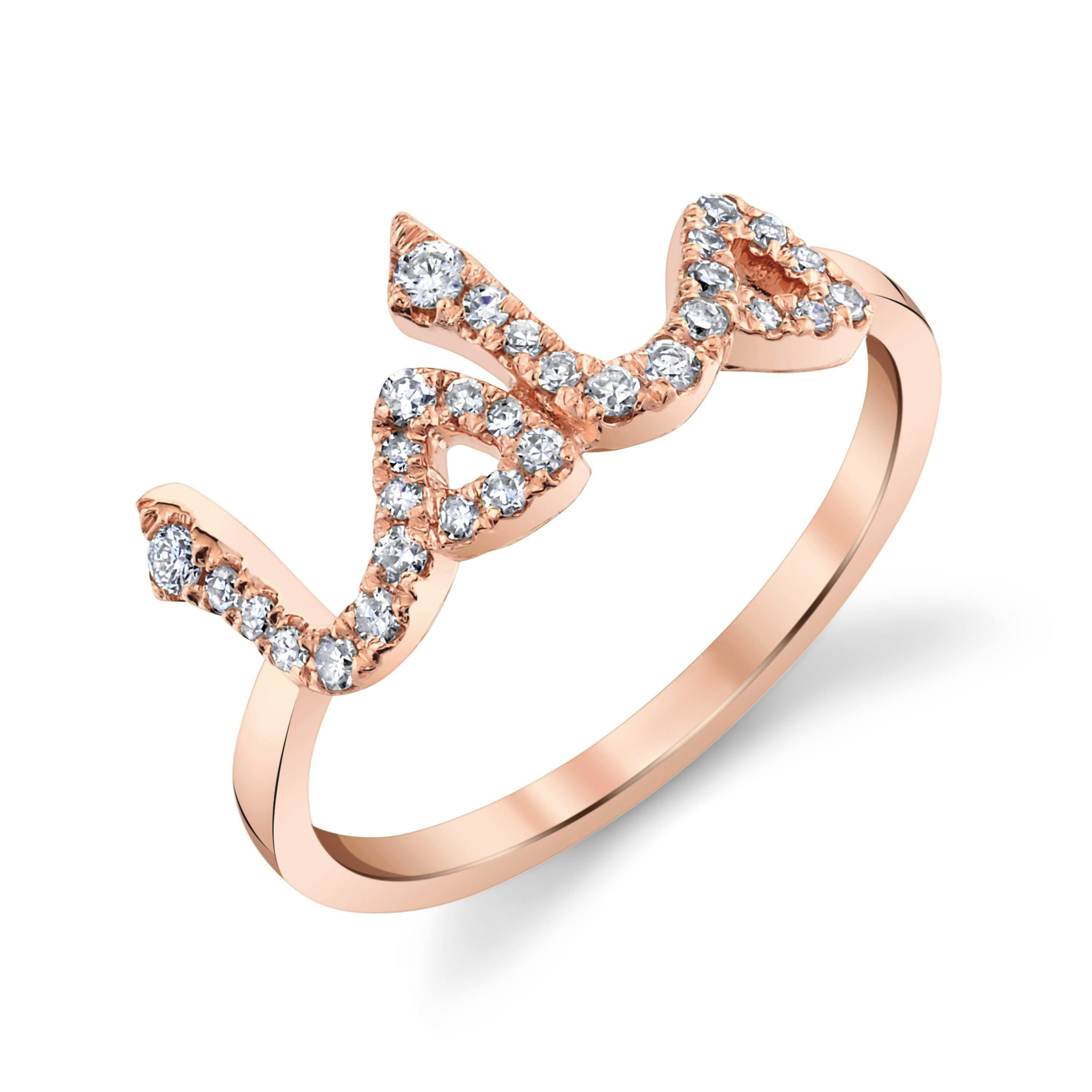The SHAY Diamond Pave Personalized 4 Letter Arabic Ring features a 4 letter customization that .21cts of pave white diamond. This band is a simple solid 18k gold band with 2.43gr.