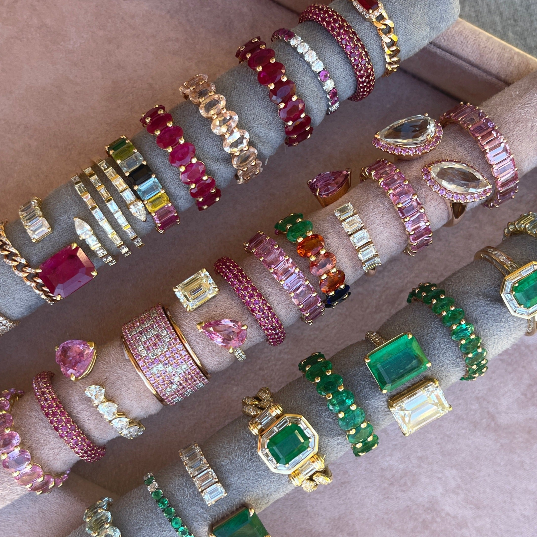 The SHAY Diamond & Pink Sapphire "I Love You" Spinner Ring.
