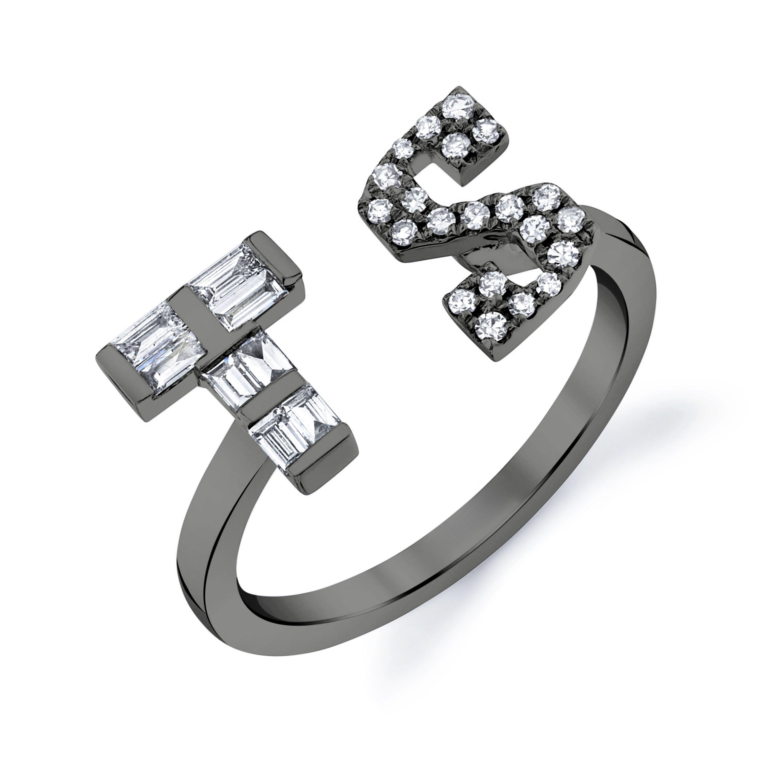 The SHAY Mixed Diamond Personalized Floating Initials Ring.