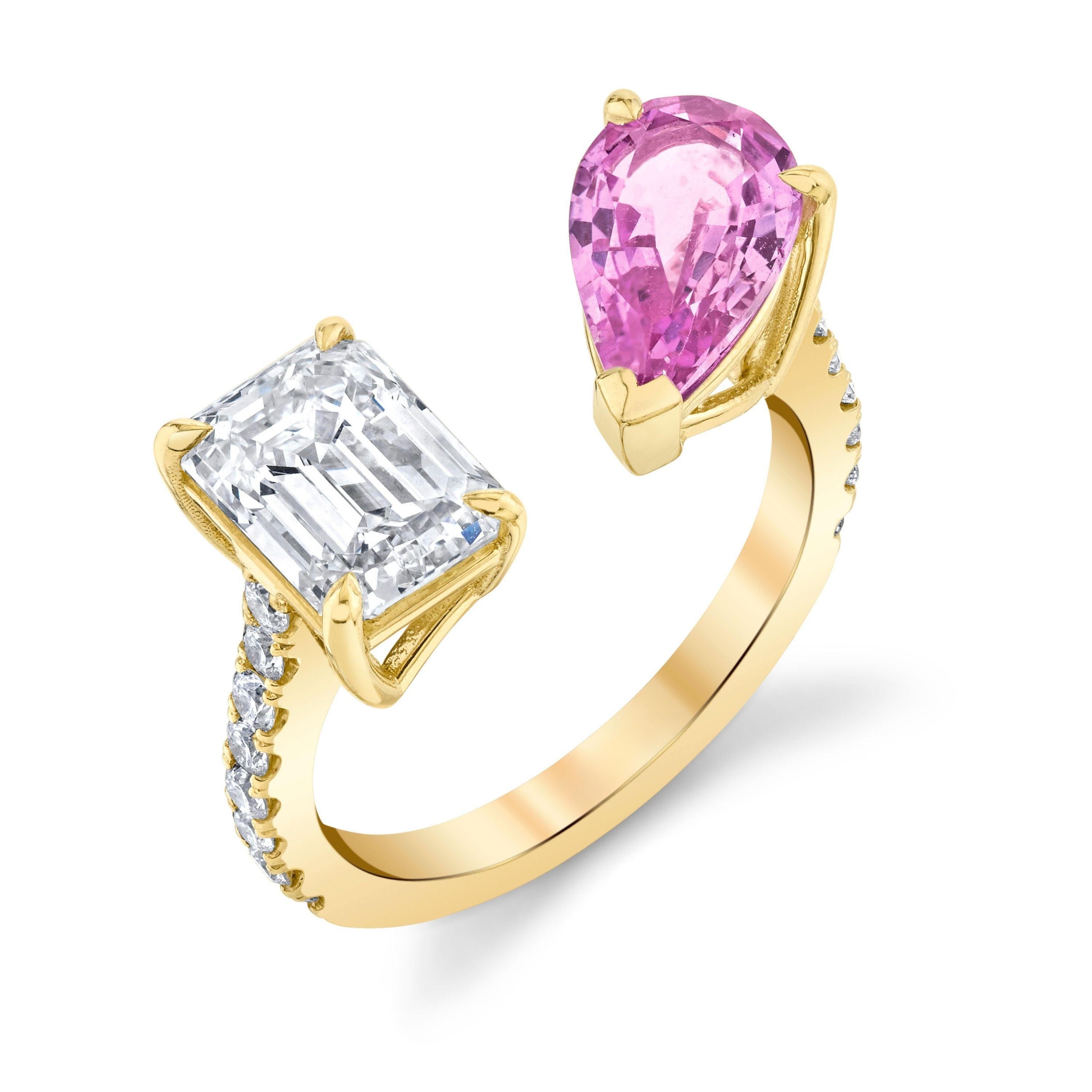 The SHAY Pink Sapphire Pear & Diamond Emerald Twin Ring.