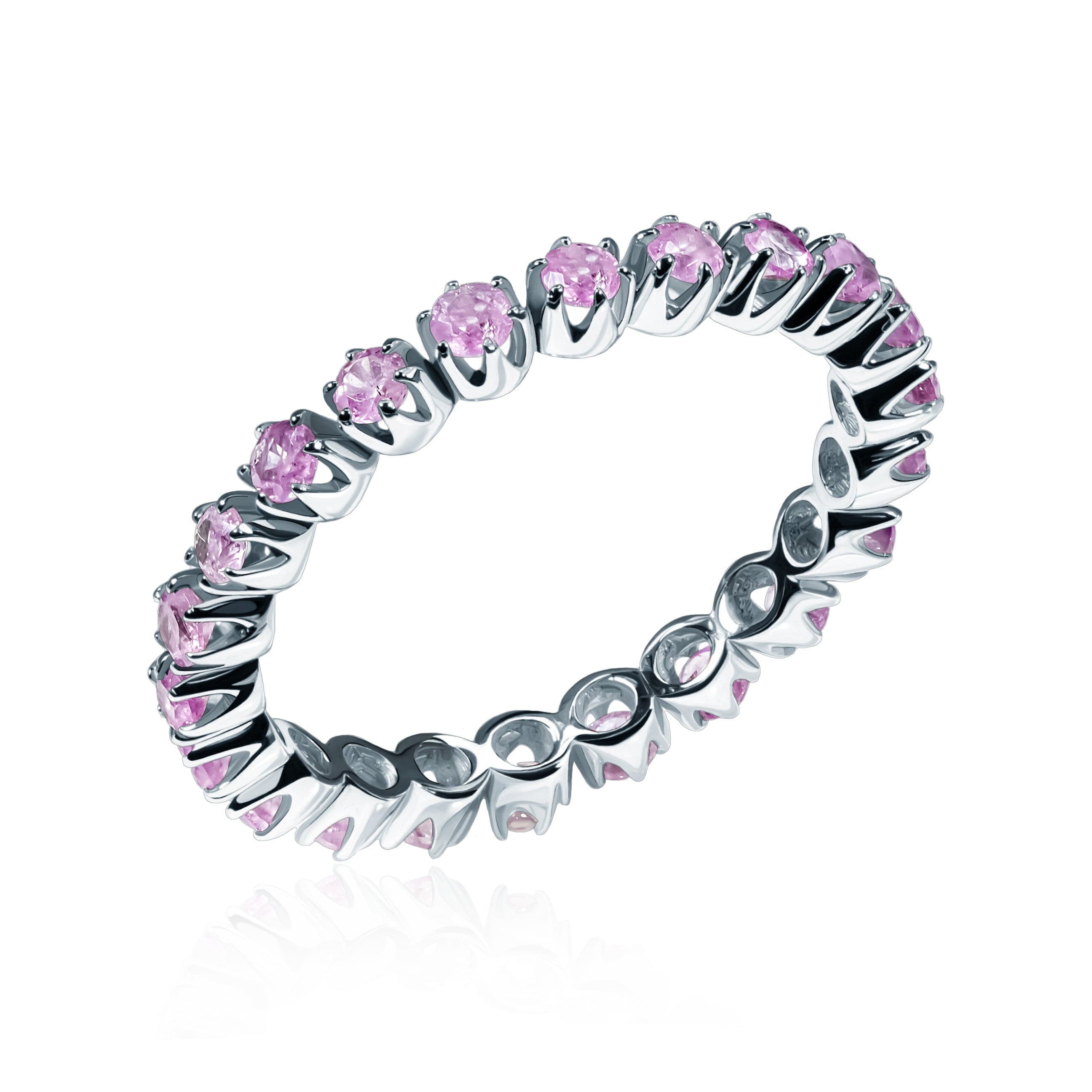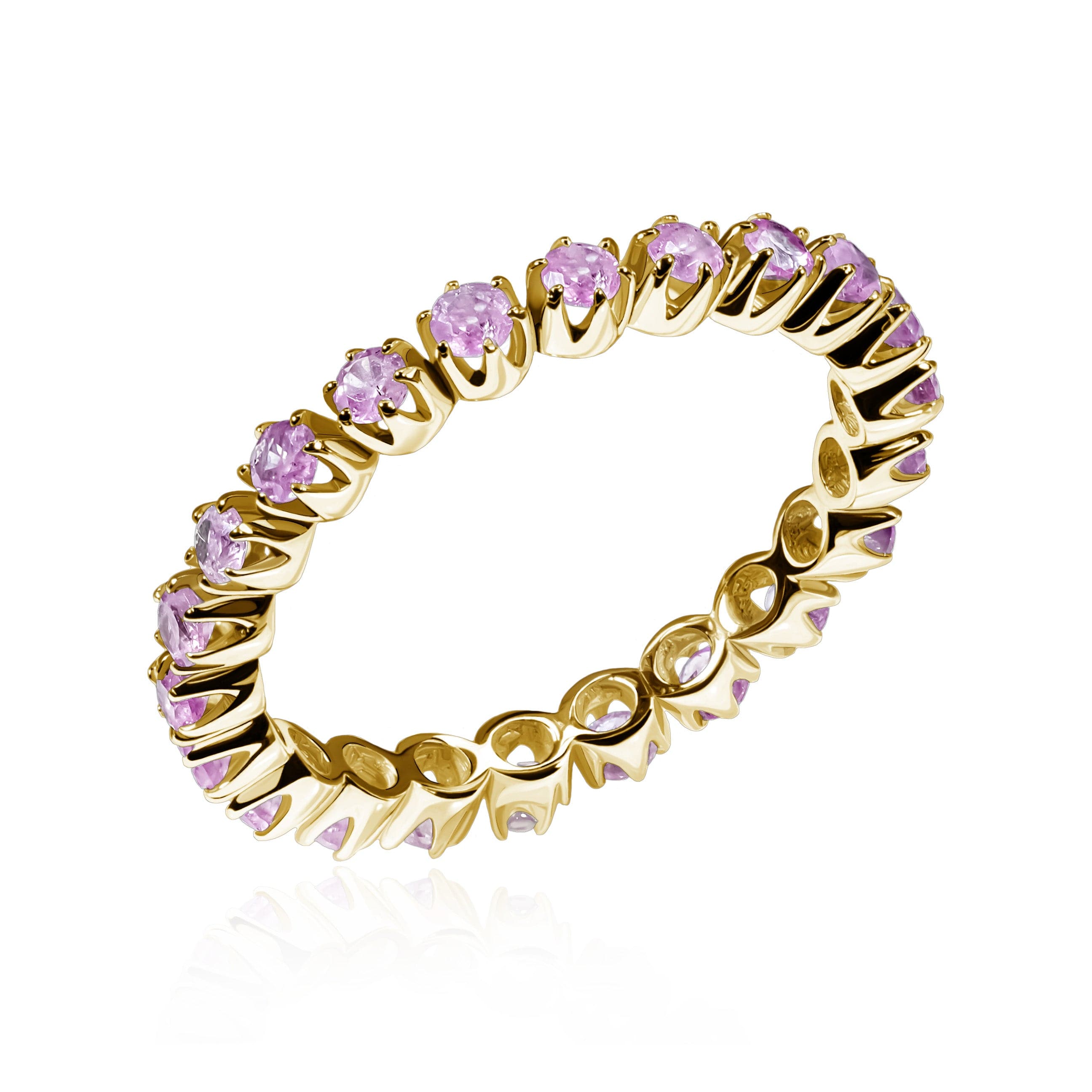 Ring from the Virgo series inlaid with soft pink sapphires. The stones are located around the entire ring circle, allowing you to maintain the look in any position on the finger. Collect the entire series of Virgo rings to create your designs, combine them, and realize your jewelry fantasy.