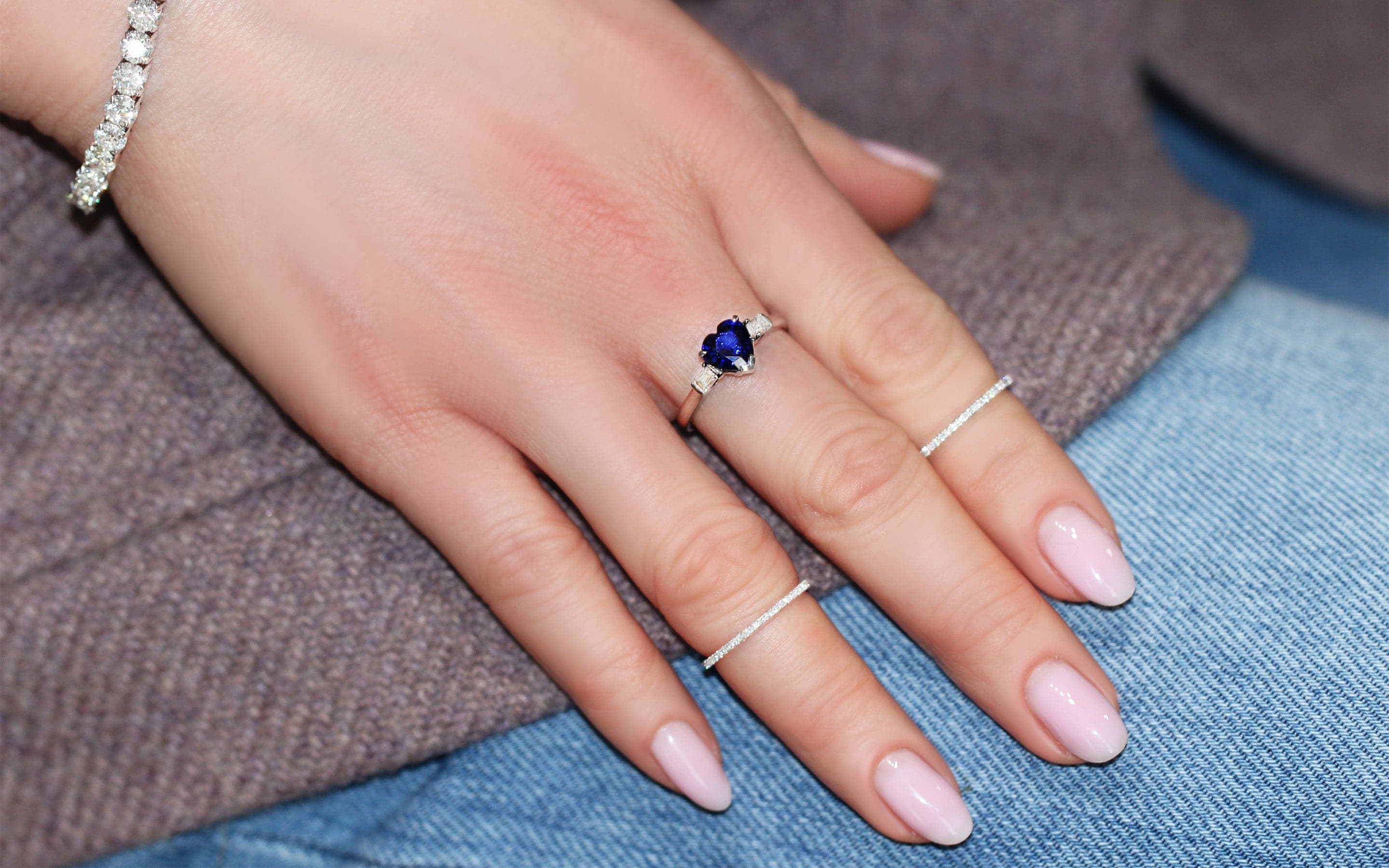 White Gold ring with Heart Blue Sapphire and white Diamonds. This item in stock ready to ship in 1- 3 days.