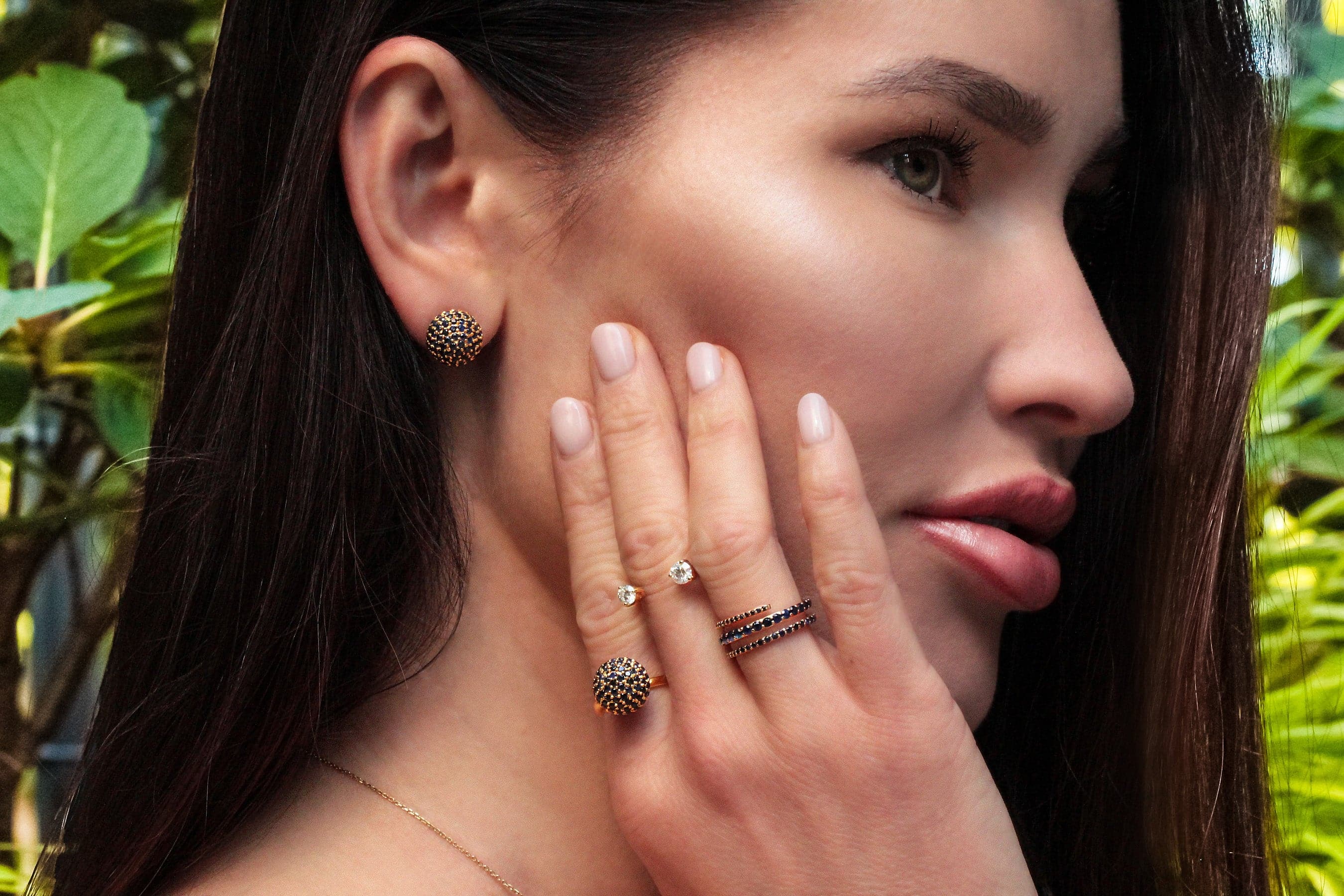 The space-themed Star Ball ring has an exciting yet discreet design in a sphere inlaid with blue sapphires. It's an excellent alternative to classic spherical jewelry.