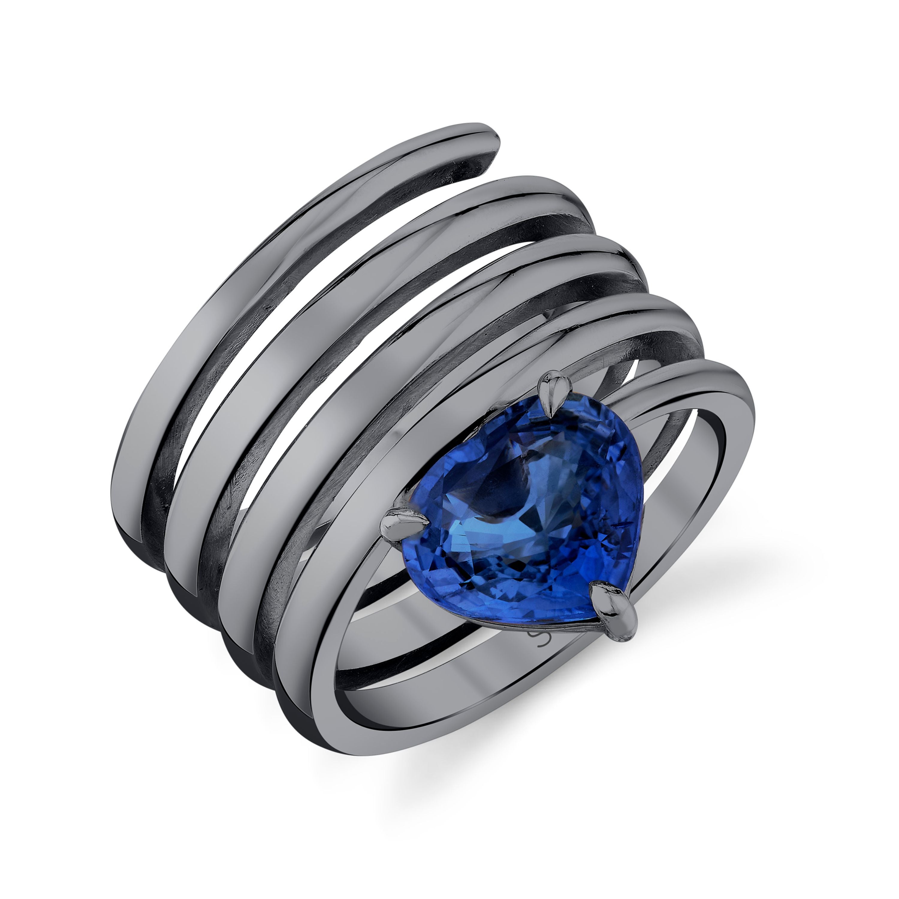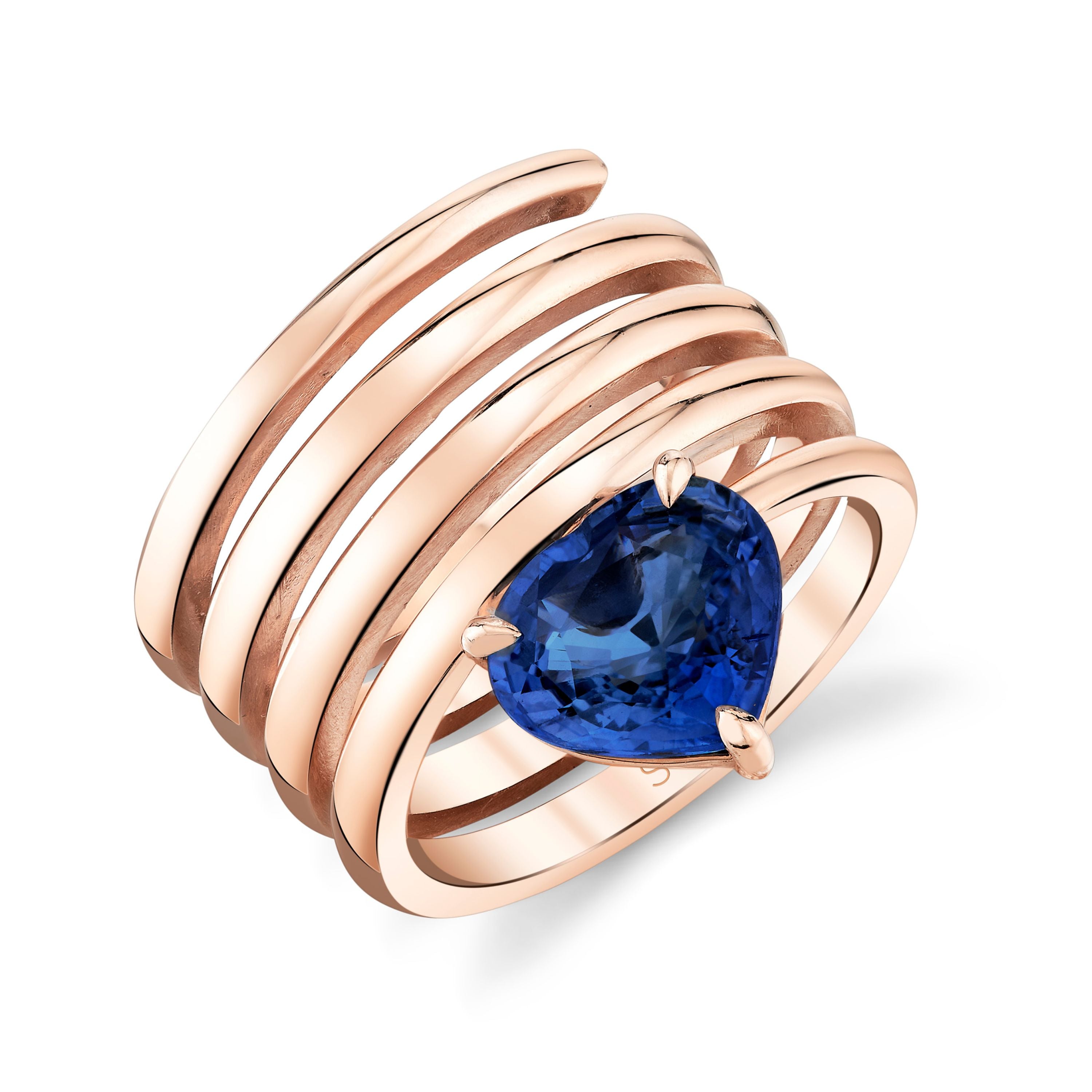 The SHAY Solid Gold Blue Sapphire Heart Spiral Ring.