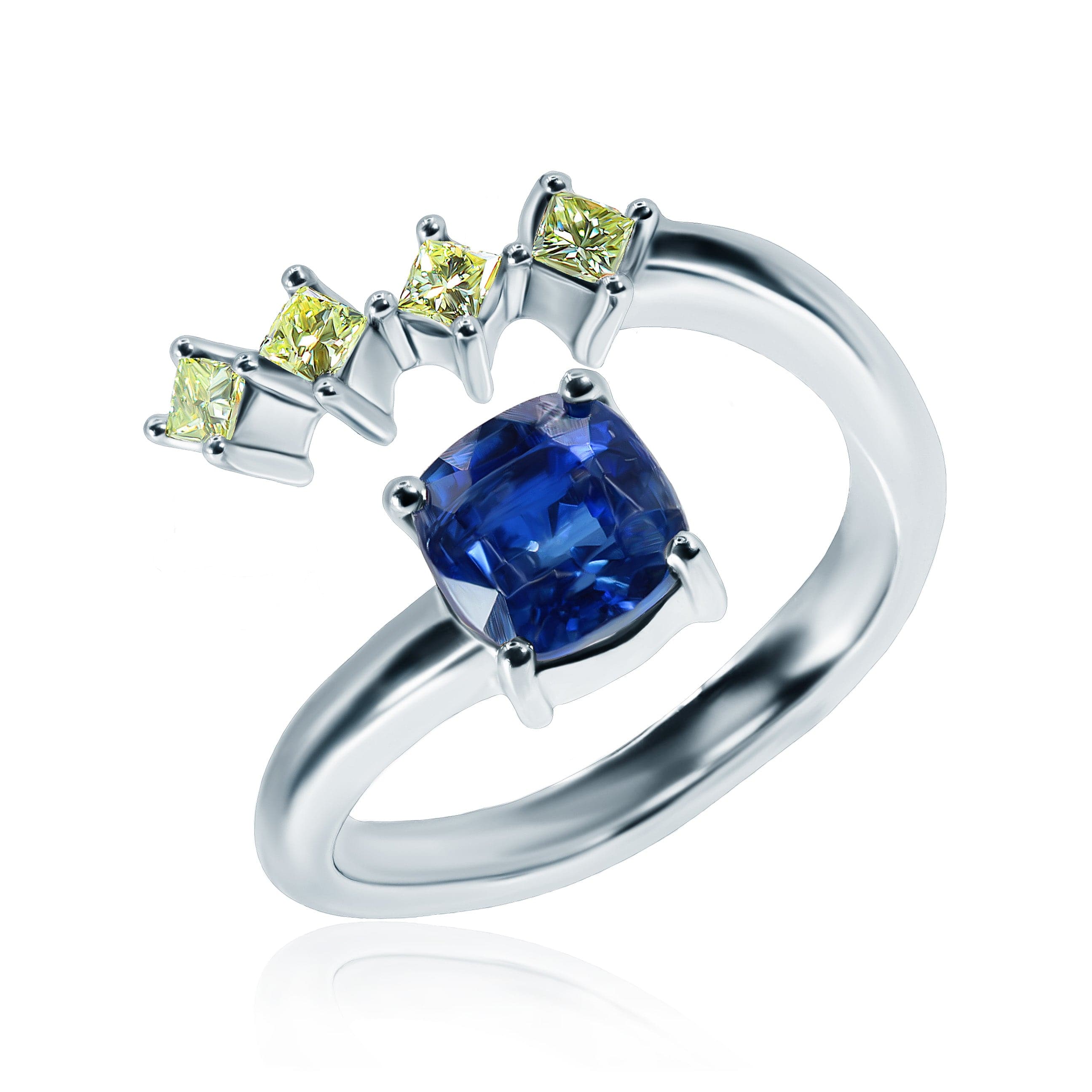 Rose ring with Sapphire and Yellow Diamonds. This item in stock ready to ship in 1- 3 days.