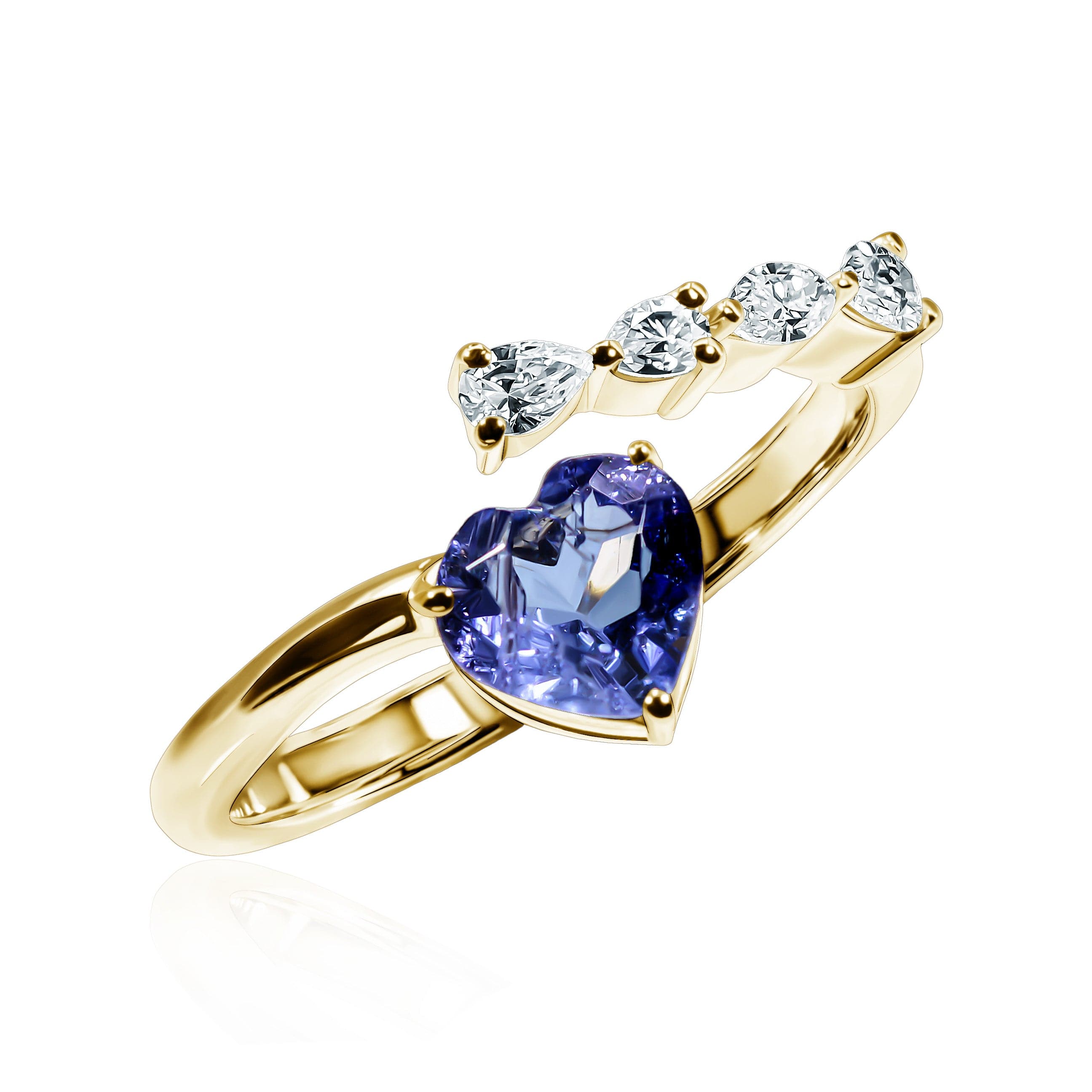 Ring with blue sapphire and diamonds from the Tenderness jewelry series. A gem in the shape of a heart – inspires warmth, and a feeling of love fills with positive emotions.