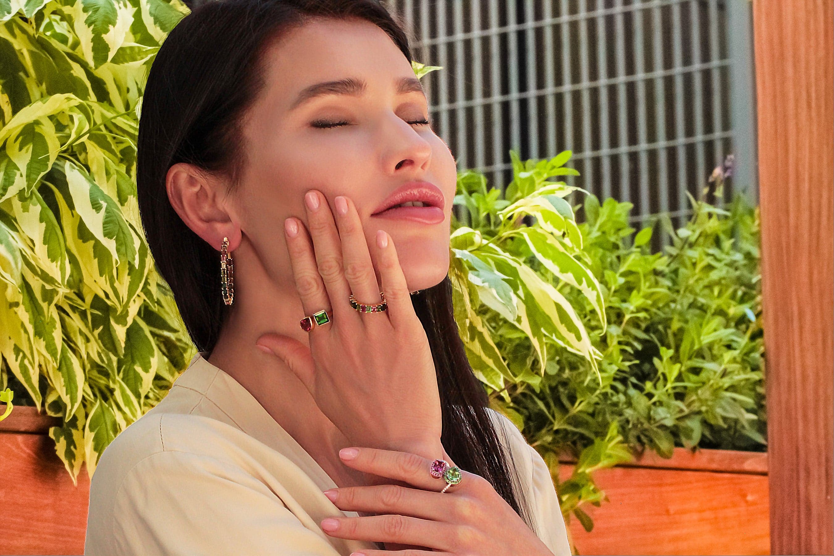 Bright Magic Flower ring with tourmalines, sapphires, and diamonds. Exquisite design and rich colors will add unique chic to your look.